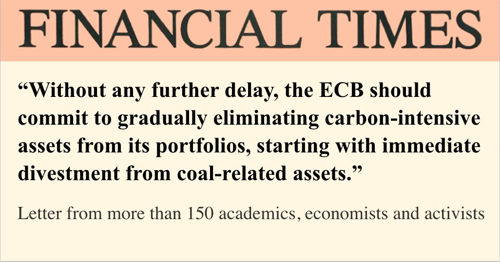 D’un autre côté, vous trouverez également de solides appuis. Combattre le changement climatique est un objectif politique majeur de l’UE ; en tant que tel, cela fait partie du mandat de la BCE tel que défini par l’article 127 du Traité de Fonctionnement de l’Union Européenne ; cela a été confirmé à de nombreuses reprises par le Parlement Européen . En outre, la BCE en tant qu’institution de l’UE est légalement liée à l’Accord de Paris sur le Climat. Qu’un doute sur ce point émerge, et vous pouvez être sûre que le Parlement européen – auprès de qui la BCE doit rendre des comptes – vous apportera de plus amples clarifications et orientations sur le rôle que la BCE devrait jouer au sein de la stratégie climatique européenne.