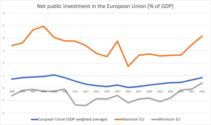 En 2011 et 2013, une réforme approfondie de la gouvernance économique a suivi la grande crise financière et la crise de l’Euro. Il est largement admis que cette réforme avait interprété de façon trop restrictive le Traité. Il s’en était suivi un sous-investissement et une période d’austérité à laquelle il n’a pu être mis partiellement un terme qu’en réinterprétant ces mêmes règles en 2015-2016, et plus récemment par le financement européen de la Facilité pour la Reprise et la Résilience. Cette grâce à cette dernière que les pays dont les taux d’investissement publics étaient particulièrement bas ont pu se rapprocher de la moyenne européenne. Ceci permet de renforcer la cohésion de l’économie européenne et crée des marges permettant d’accélérer la transition.